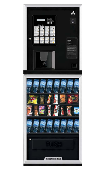LEI300, distribuidor automático de bebidas quentes com capacidade de 300 copos e com o estilo inconfundível da linha LEI. Combinada com a máquina de snacks compacta ARIA S, a LEI300 transforma-se num completo distribuidor para bebidas quentes, frias e snacks, ideal para pequenos e médios espaços. Refinado design com moldura de porta em alumínio anodizado natural. ARIA S, distribuidor automático de espirais, refrigerado a 8 graus para a venda de snacks, latas e garrafas; disponível na versão slave.
