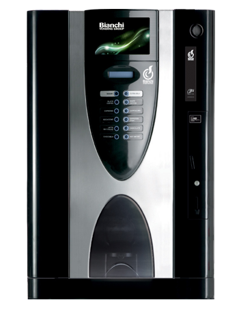 LEI200, máquina de venda automática com 200 copos (também disponível na versão semi-automática), café expresso + produtos solúveis, com 12 seleções, que podem ser configurados tanto como seleções diretas como pré-seleções.