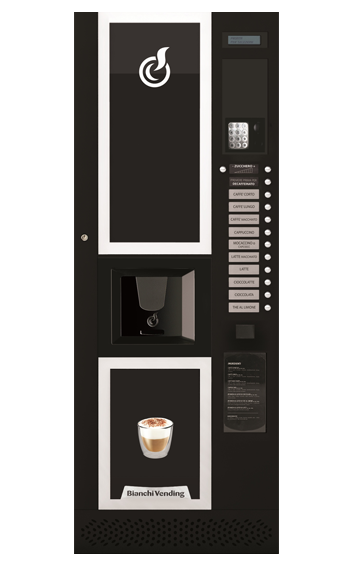 LEI400, distribuidor automático para bebidas quentes com capacidade de 400 copos com painel de 13 seleções, das quais 3 são pré-seleções para dosagem de açúcar e para descafeínado.